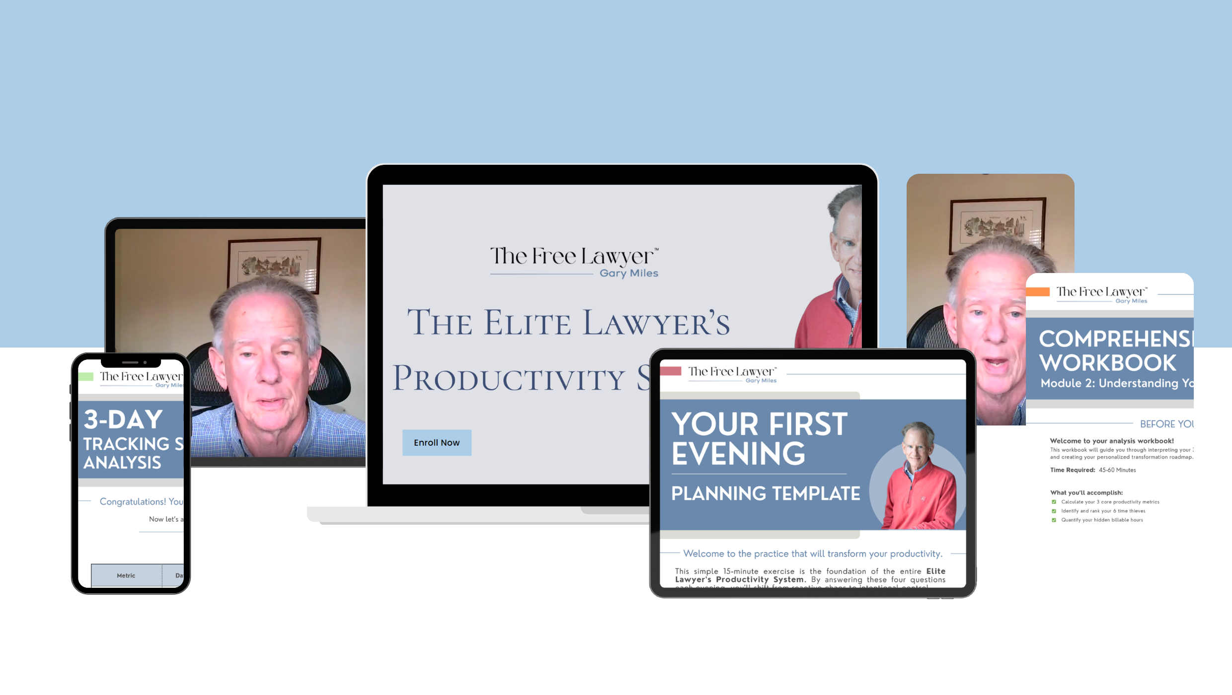 A 7-module productivity system for attorneys who want more billable hours, less chaos, and a more sustainable way to practice law. Built from Gary Miles’ 40+ years in legal practice and designed specifically for the realities of legal work.